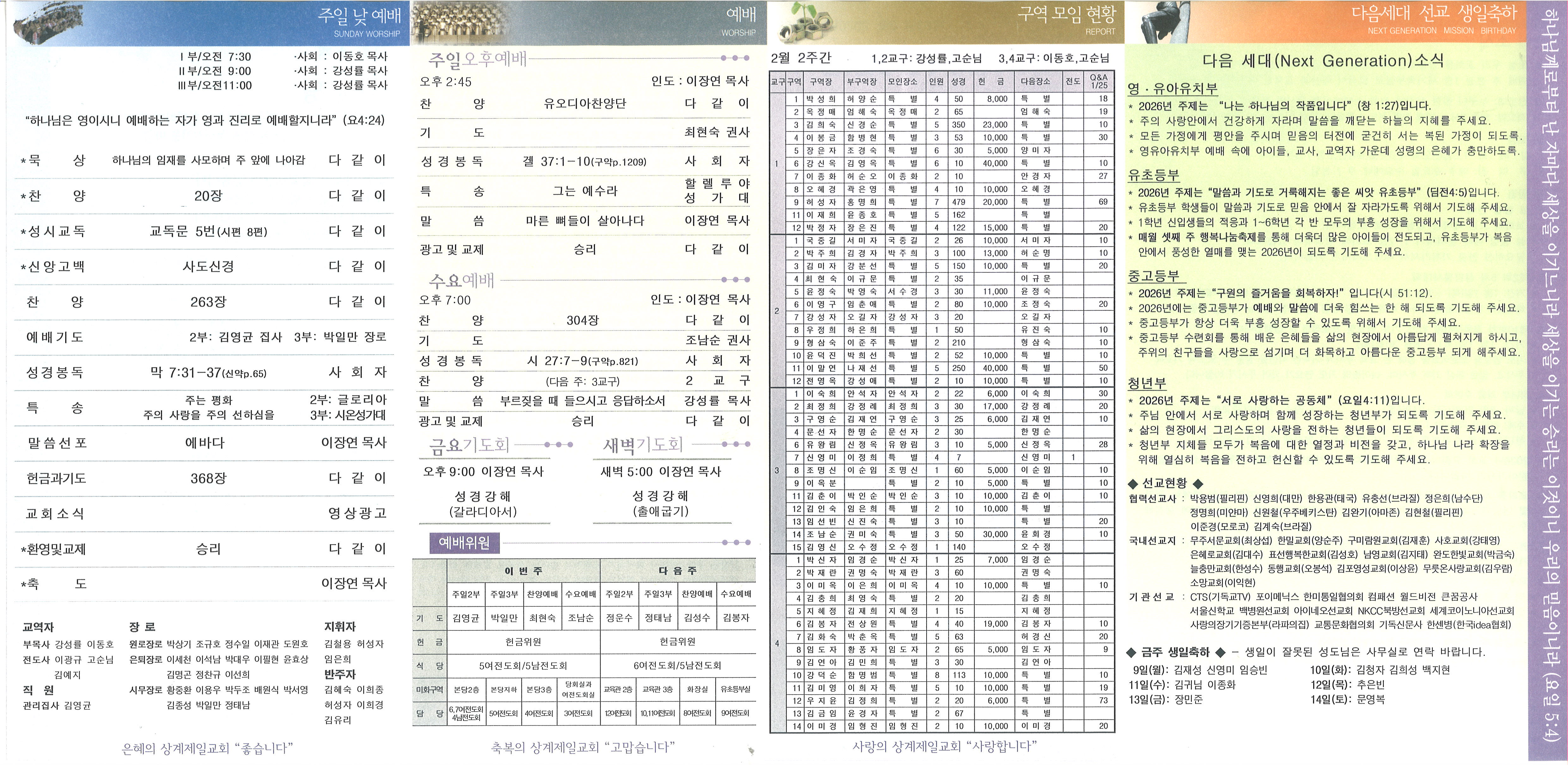 2026년 2월 15일 주일 교회소식 및 Q&A